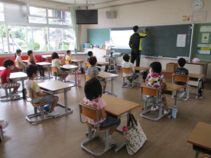友達と一緒に一生懸命学び、休み時間は校庭を楽しそうに走り回る姿が見られました。