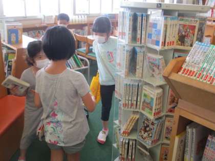 本棚の配置が新しくなった図書室に初めて入り、本を借りました。