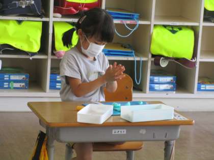 今日は暑かったのでマスクが濡れて、学校で付け替えた子供たちが多くいました。保護者の皆様、予備の準備をありがとうございます。また新しく補充をお願いします。