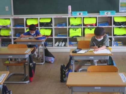 コロナウイルス感染予防のために、2時間目と3時間目の間のなかよしタイムは一人でできる遊びや一人でできることをして過ごす「マイタイム」となっています。