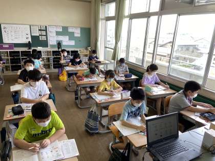 ALTの先生とも久しぶりに再会し、学習しました。今日は、好きなもの・ことについて尋ねたり答えたりする表現の学習でした。デジタル教科書の音声やALTと担任のやりとりを聴くとき、どんなことを言っているんだろうと想像しながら聞いている子供たちです。がんばろうとする気持ちが現れています。