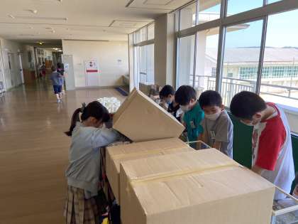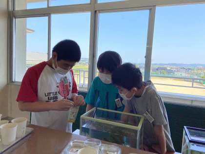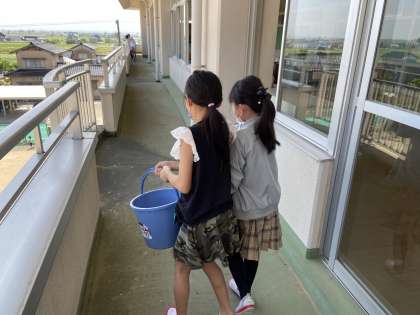 メダカやインゲンマメのお世話を進んで行ってくれています。水の汚れを気にした子供たちは、バケツに水を入れてベランダに出してくれました。また水を入れ替えましょう。このような、生き物を大切にしようとする姿勢が見られて嬉しく思います。