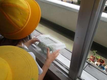 理科の学習で育てていたモンシロチョウのさなぎが成虫になりました。帰りの会を終えた後、成虫になっているのに気付いた子供たちと、外に放してあげました。来週は、成虫の姿を観察できるといいですね。