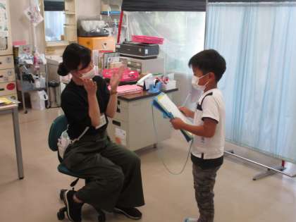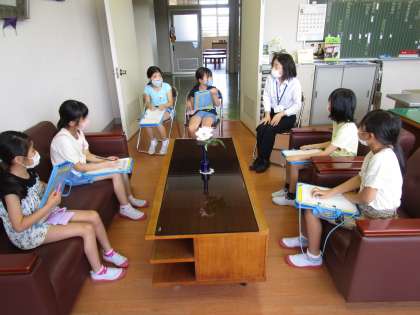 総合の学習の時間では「神保大図鑑」を作るため、神保小にはどのようなすてきがあるかを見付けています。気になる場所へ行ったり、先生・職員の方々に質問をしたりして、自分が調べるテーマを決めました。緊張しながらも、丁寧に質問することができていました。