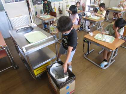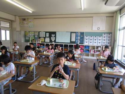 【3年生】簡易給食スタート 公開日 2020/06/10 更新日 2020/06/10 3年生 簡易給食がスタートしました。しかし、これまでと違うメニューに子供たちは戸惑っている様子でしたが、約束を守って安全に食べていました。 保護者の皆様には、長い期間子供たちのおいしいお弁当を用意していただきありがとうございました。