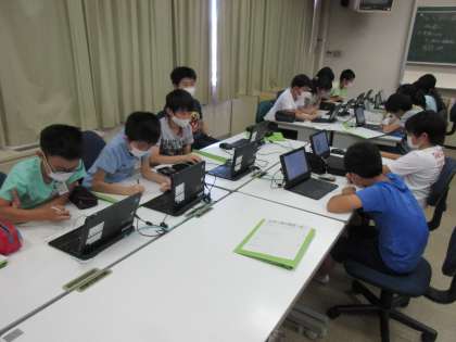 昨日の取り組みです。総合的な学習の時間では一人一人が課題をもち、課題の解決に向けて調べ学習に取り組んでいます。パソコンの使い方に気を付けて調べています。