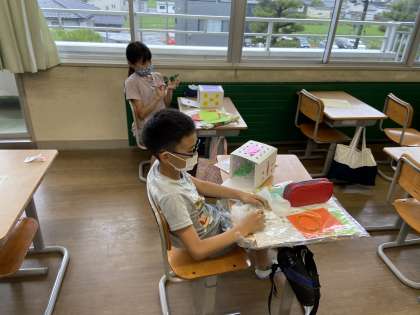 「のぞいてみると」の制作を続けています。今日は絵具を使って紙粘土に色付けをしている子供が多くいました。思い思いの作品に仕上がるよう、来週も取り組んでいきます。