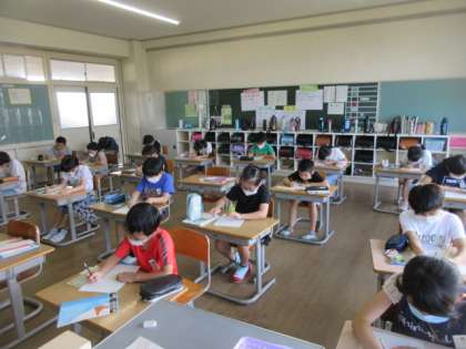【4年生】朝から集中! 公開日 2020/06/15 更新日 2020/06/15 4年生 算数の学習の様子です。 算数では、最初に50ます計算に取り組んでいます。 朝から集中して真剣に取り組む、良い空気が流れていました。