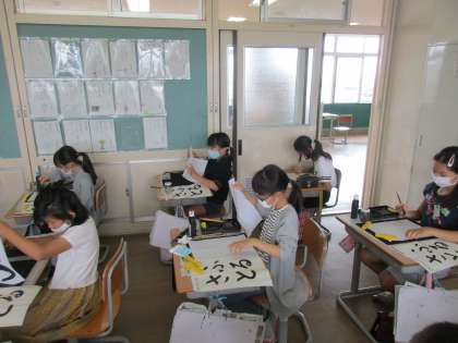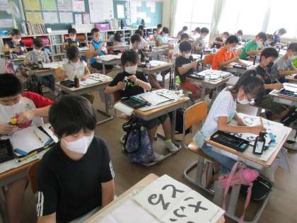 いつも以上の真剣さ、集中度合での書写の時間でした。前回練習した「ふるさと」の清書をするにあたり、すばらしい態度でしたね。