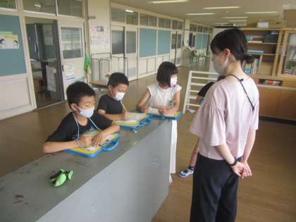 国語では、先生方にお話を聞きました。メモを上手にとって、先生たちの趣味を文章でまとめることができました。先生たちの変わった?趣味を楽しそうに聞いていました。