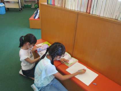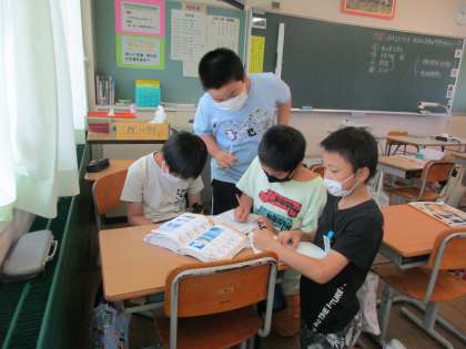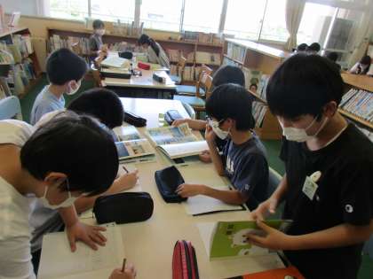 理科では、動画を見て学習を進めた後、図書室に行って天気に関することわざや雲の種類等について調べました。指示を聞いてすぐに行動し、時間いっぱい調べる姿を見て、理科担当の先生も「すごい」と褒めておられました。みんなのよさですね。