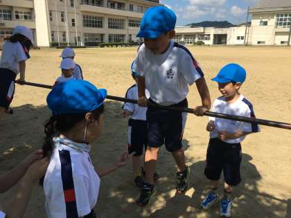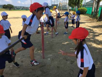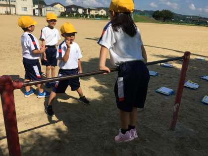 2組は今日は鉄棒運動をしました。鉄棒じゃんけん、みんな夢中で楽しんでいました。
