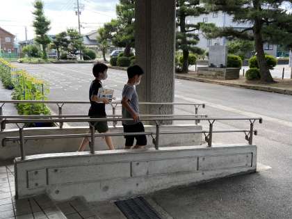 誰もが過ごしやすい町にするための工夫を見付け、報告書にまとめる学習をスタートしています。身近な場所といえば、学校です。今までの生活経験からもイメージを膨らませましたが、今日は時間をとり、校内を探検しました。車椅子の方へのスロープ、外国の方が来られた際のピクトグラム、ドアの英語表記等、多くの発見がありました。明日からは、一人一人がもっと知りたいことを基にして調べ学習にも取り組んでいきます。