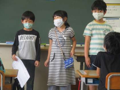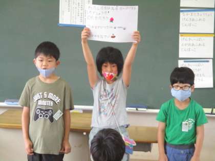 にこにこ大さくせん2 公開日 2020/06/23 更新日 2020/06/23 2年生 1年生の前ではきはきと発表しました。 これからも、1年生の手本になるように、規則を守ったり、学習を頑張ったりしようと、意欲をもつことができました。