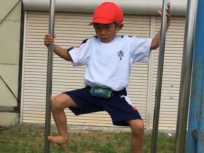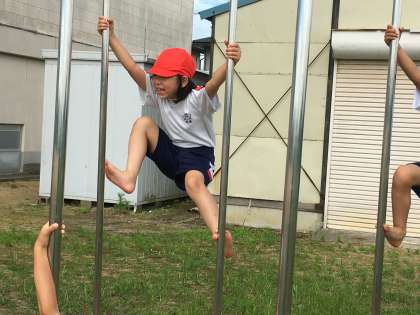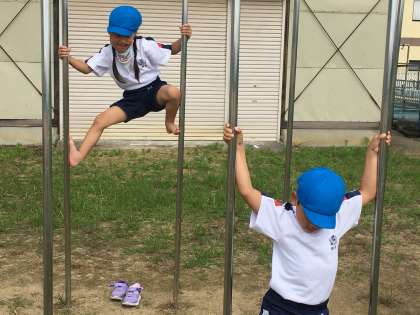 上手にコツを掴んでぐんぐん登る子も出てきました。思わぬほど高く登って、降りるのが怖いほどな子もいました。ゆるゆると、気を付けて降りることができました。