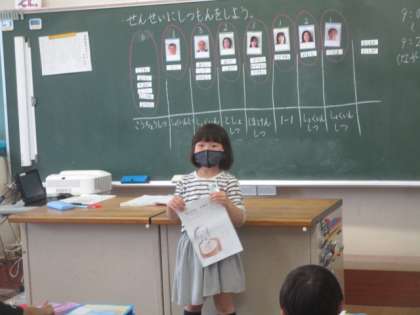 生活科の学校探検で学校で働く先生や職員の方についてもっと詳しくなるためにインタビューをしました。子供たちはそれぞれ気になる先生方のもとへ行き質問し、クラスにかえってみんなの前で新しく知ったことを発表しました。これを機会にいろんな先生と仲良くなってほしいです。