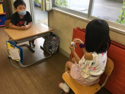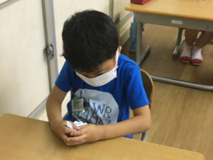 計算カードを使い始めています。一人でする方法、友達とする方法等様々な使い方があります。足し算名人を目指しましょう。