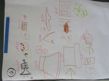 色をぬったり、ジェスチャーで伝えたりして、ヒントも出し合いました。