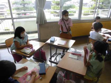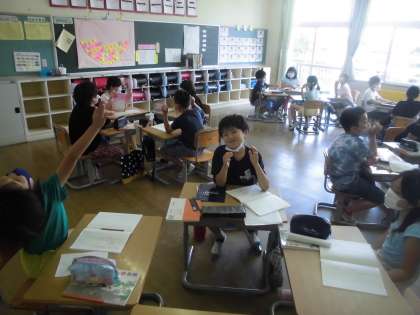1組でも、知らせたいことをグループとなって伝え合いました。発表者は、大事なことを忘れずに伝えることができました。聞き手は、目をつないで聴く姿が増えてきました。活発に質問する姿が見られ、友達の話を興味深く聴くことができました。発表が終わると発表者に向けて拍手をする子供たち。素晴らしいです。この聴き方を続けていってほしいです。