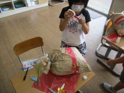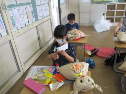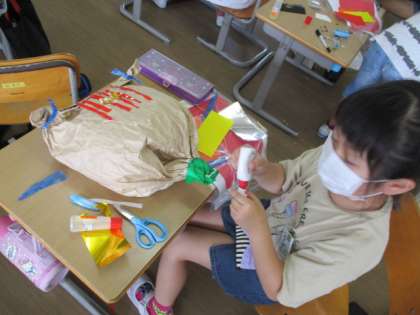 図工では、「くしゃくしゃぎゅ」という工作に入りました。