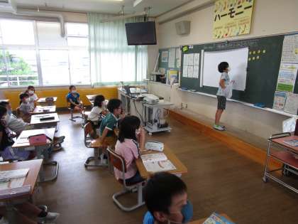 外国語活動「How many?」の学習では、外国の数の数え方を知ったり、1〜20までの数の言い方に慣れたりしました。子供たちは他の国の数え方を聞き、驚いたりおもしろがったりしていました。また、袋の中にあるものの数を予想するクイズは盛り上がり、楽しく数に親しむことができました。新しく知った11〜20までの数についてはこれからもゲーズ等を通して、どんどん言い慣れていきたいと思います。