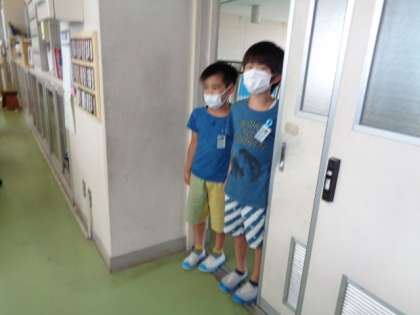 今日から7月。席替えをしたり、一人一役当番を新しく決めたりしました。希望の当番になれず泣いた友達を気遣い、替わってあげる思いやりのある行動に心が温かくなりました。写真は、お便りボックスと健康観察板を職員室に取りに来た子供たちです。大きな声でしっかり挨拶ができました。新しい当番のお仕事、7月もがんばっていきましょう!