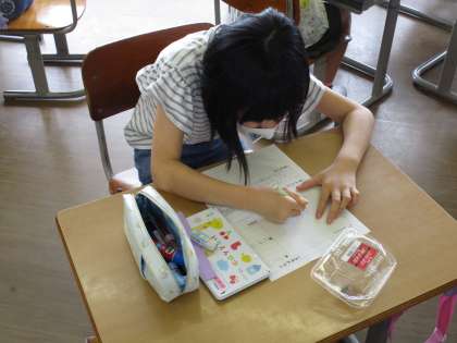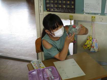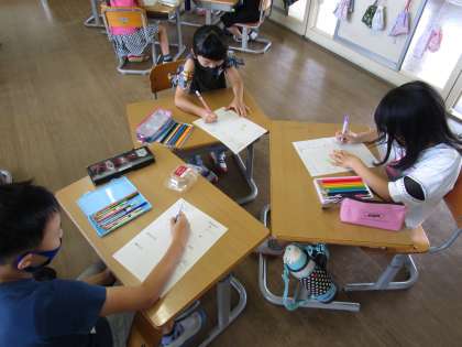 理科「トンボやバッタを育てよう」の学習では、バッタの観察を行いました。バッタは昆虫の仲間であることから、モンシロチョウと同じところや違うところ等について観察を行っていました。元気に動き回るバッタを様々な角度から観察し、たくさんのことに気付いているようでした。