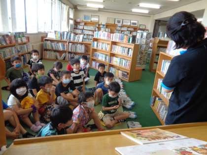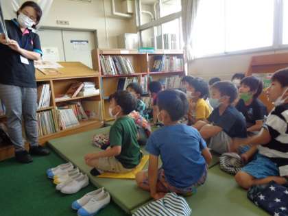 今日は司書の先生に「たなばた」の絵本を読み聞かせしていただきました。