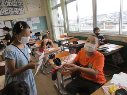 今日の外国語科の中心は、誕生日にほしいものをお互いに尋ね合う活動でした。単語の発音練習をしているときから、ジェスチャーをつけて言っている子供たち。ペア活動の中でも、ジェスチャーをつけて「伝えよう」とする意識がよく分かりました。座っている人のところへ行き、積極的に活動する姿もすてきでした。