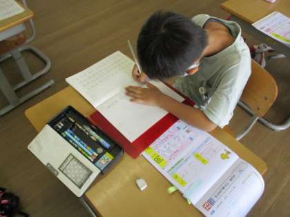 休業中に進んでいたところを、書き順を見直しながら練習しました。難しい漢字もありましたが「先生!こんなふうに書けたよ!」と元気に報告してくれた子供たちでした。