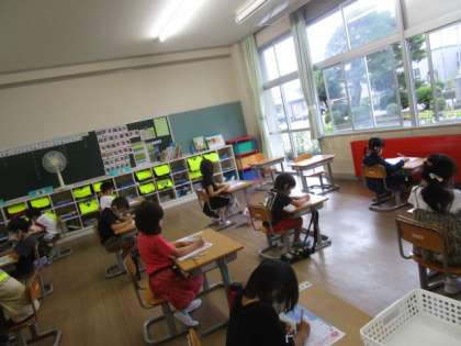 1時間目の時間に国語のひらがなのテストを行いました。子供たちはいつも以上に気をつけて丁寧な文字を書こうと一生懸命取り組んでいました。宿題プリントでもとめ・はね・はらいに気をつけて書いている子が増えてきました。テストを機によりいっそう意識して書いてほしいです。