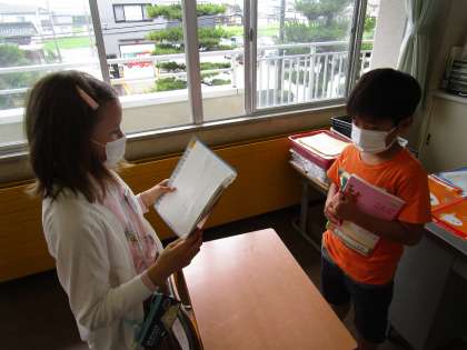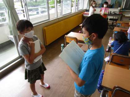 国語科「こまを楽しむ」の学習では、文章の中に出てたこまの中で一番遊んでみたいものを選び、理由とあわせて友達に伝えました。友達の考えを聞き、感想を伝え合っている姿がとても素敵でした。