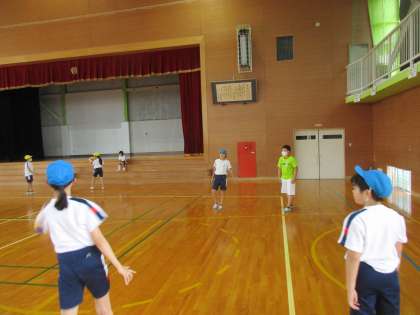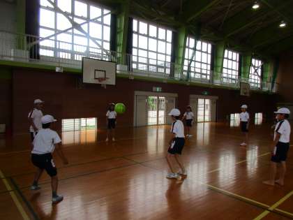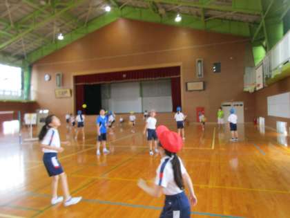 雨でグラウンドが使えないため、体育館でソフトバレーボールを行いました。初めてする子供も多く、ボールの扱い方に慣れない様子も見られました。しかし、練習を繰り返す中でボールがつながるところが増えていきました。試合もやってみましたが、うまくいかないところも多くあったようです。「こうしたらいい」という子供の思いを大切にして、よりよくしていきましょう。