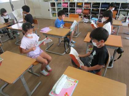 【3年生】音読 公開日 2020/07/09 更新日 2020/07/09 3年生 国語科の学習では、ペアで音読をしています。ただ音読をするだけではなく、声の大きさや読むスピード等に気を付け交代で読み、ペアの人に評価をしてもらいます。友達から「○」がもらえるようにと練習するうちに、相手が聞きやすい声の大きさで読んだり、ちょうどよいスピードで読むことができるようになってきています。日々の練習の成果だと感じています。これからも続けていきましょう。