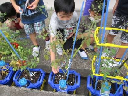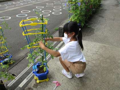 ぐんぐん育つ野菜をお世話するのは大変ですが、子供たちは愛情込めて野菜のお世話を続けています。