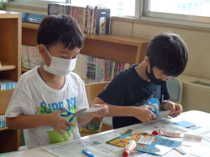 今日のなかよしタイムに、図書委員会が主催するしおり作りがありました。子供たちはこの日もとても楽しみにしており、2時間目が終わるとはさみとのりを握りしめて図書室へいきました。自分で作るしおり作りを楽しんでいました。