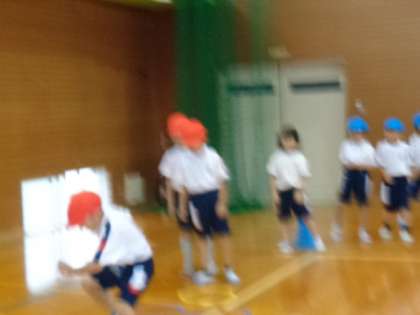 今日の体育では、ぴょんぴょんコース(ミニハードル)、ぐねぐねコース(長縄)、けんけんぱコース、横跳びコースをぐるぐると回っていろんな走り方で走りました。子供たちはとても楽しそうでした。