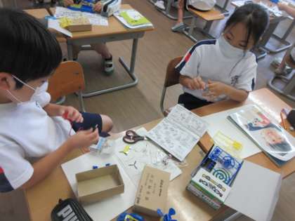 【4年生】電流のはたらき 公開日 2020/07/14 更新日 2020/07/14 4年生 理科の様子です。モーターカーを使って、電流についての学習をしました。 協力しあって活動する様子、自分たちで考えて実験する様子が見られました。