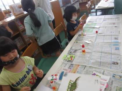 なかよしタイムの様子です。しおりコンテストに参加したり、多目的ホールで遊んでいる様子です。