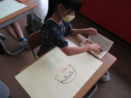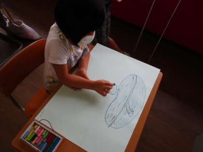 大きな画用紙いっぱいに、子供たちはたまごから生まれたものを楽しそうに描いていました。
