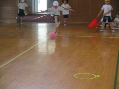ならびっこキックベース1 公開日 2020/07/17 更新日 2020/07/17 2年生 体育では、初めてのベースボール型のゲーム「ならびっこキックベース」をしています。 攻めでは、ボールを蹴った後すぐに走り、飛んだボールの距離や相手の動きを見て、どこまで行くか考えて走る。守りでは、ボールが飛んでいく方向に掛け、チームのみんなで並ぶ。攻めと守りのそれぞれに楽しさがあり、子供たちは夢中で運動しています。
