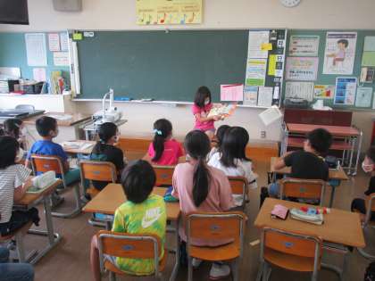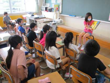【3年生】読み聞かせ隊の読み聞かせ 公開日 2020/07/20 更新日 2020/07/20 3年生 今日もなかよしタイムの後に読み聞かせ隊に「チーター大セール」という本の読み聞かせをしてもらいました。おもしろい話だったので、途中には聞いている人の笑い声もありました。来週の読み聞かせも楽しみです。