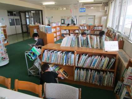 なかよしタイムに図書室へ行くと、何人かの本を読んでいる子や本を借りに来る子、図書員の仕事をしている子等が見られました。図書委員のおすすめの本もどんどん借りられているようです。