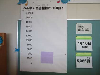 全校の読書冊数はいよいよ5000冊を超えました。4連休や夏休みにも読書に親しんでほしいと思います。