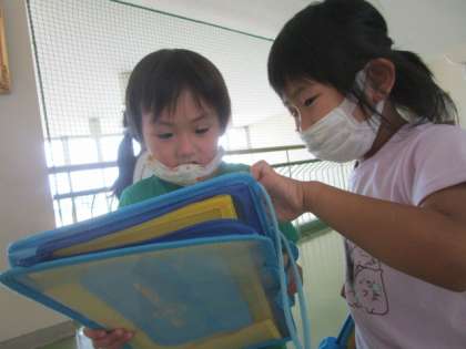 【1年生】先生の名前を聞きに行ったよ! 公開日 2020/07/21 更新日 2020/07/21 1年生 なかよしタイムの時間に探検バックを持って先生と仲良し大作戦を行っている1年生の姿が見られました。友達と仲良く並んで一生懸命自分の名前を伝えようとしていました。