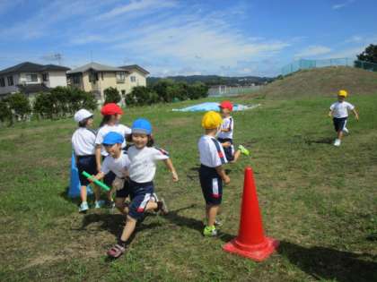 2時間目の体育はグランドでリレーをしました。この時間を子供たちは朝からとても楽しみにしていました。リレーは色帽子別に分かれて、順番も子供たちで話し合って決めました。抜かし抜かされの大接戦で子供たちは白熱した勝負を楽しんでいました。