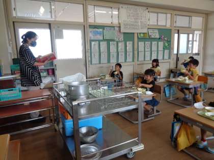 今日は、給食の時間に司書の先生に読み聞かせをしていただきました。耳だけで聞く読み聞かせでしたが、子供たちは静かに聴きながら給食を食べました。先週の道徳で勉強した「金のおの」のお話だったので、子供たちは同じところと違うところを見つけて楽しんでいました。