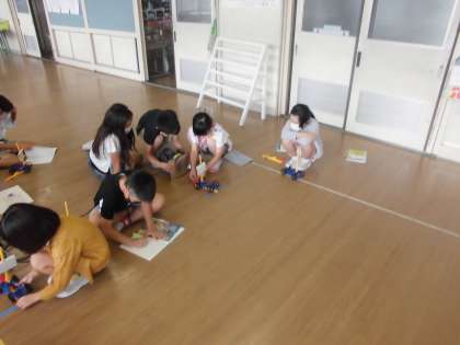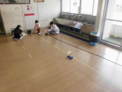 理科の学習では、風の強さによって車の動くきょりは変わるかという課題に向けて取り組んでいます。算数で学習した巻きじゃくの使い方を生かして取り組む姿が見られました。片付けもグループのみんなで協力していた姿が素敵でした。