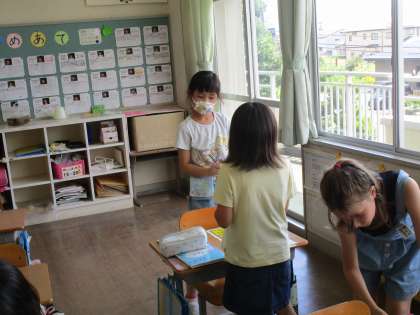 算数科「数をよく見て暗算で計算しよう」の学習では、暗算でおつりを求め、買い物をしました。何度も暗算をする中で、どんどん計算スピードが速くなっている子供も見られました。実際に買い物するときに役立つといいなと思います。