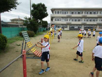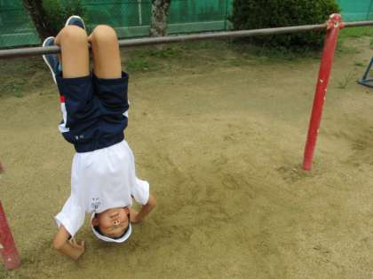 【2年生】鉄棒・うんてい3 公開日 2020/07/30 更新日 2020/07/30 2年生 鉄棒では、5〜10秒ぶら下がるウォーミングアップをしてから、それぞれ前回りや逆上がりなど様々な技に挑戦しました。 「こんなふうにやるんだよ〜」「見て見て〜!」と回って見せてくれる子がたくさんいました。